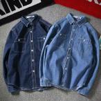 デニムシャツ メンズ 長袖 シャツ デニム ブラウス カジュアルシャツ ウエスタンシャツ ス 無地 ゆったり 羽織り 秋服 秋物 春 開襟