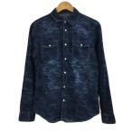 ジェイフリーメン シャツ ウエスタン カジュアル スタンダード デニム 総柄 迷彩 カモフラ 長袖 46 紺 青 ネイビー ブルー メンズ