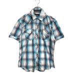 Venzulia 半袖 ウエスタンシャツ Lサイズ チェックシャツ ライトブルー 古着卸 アメリカ仕入 t2409-3086