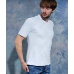 tシャツ バイアスブリスターチェックJQVネック半袖プルオーバー メンズ