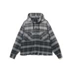 シャツ ダメージ フード チェック シャツ「ワイドショートフィット」 メンズ