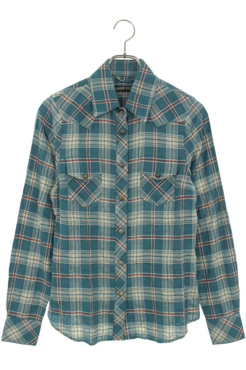 クロムハーツ Chrome Hearts サイズ:XS スターボタンチェック柄長袖シャツ(ブルー調×シルバー)【316052】【FK04】【メンズ】【中古】bb17#rinkan*B