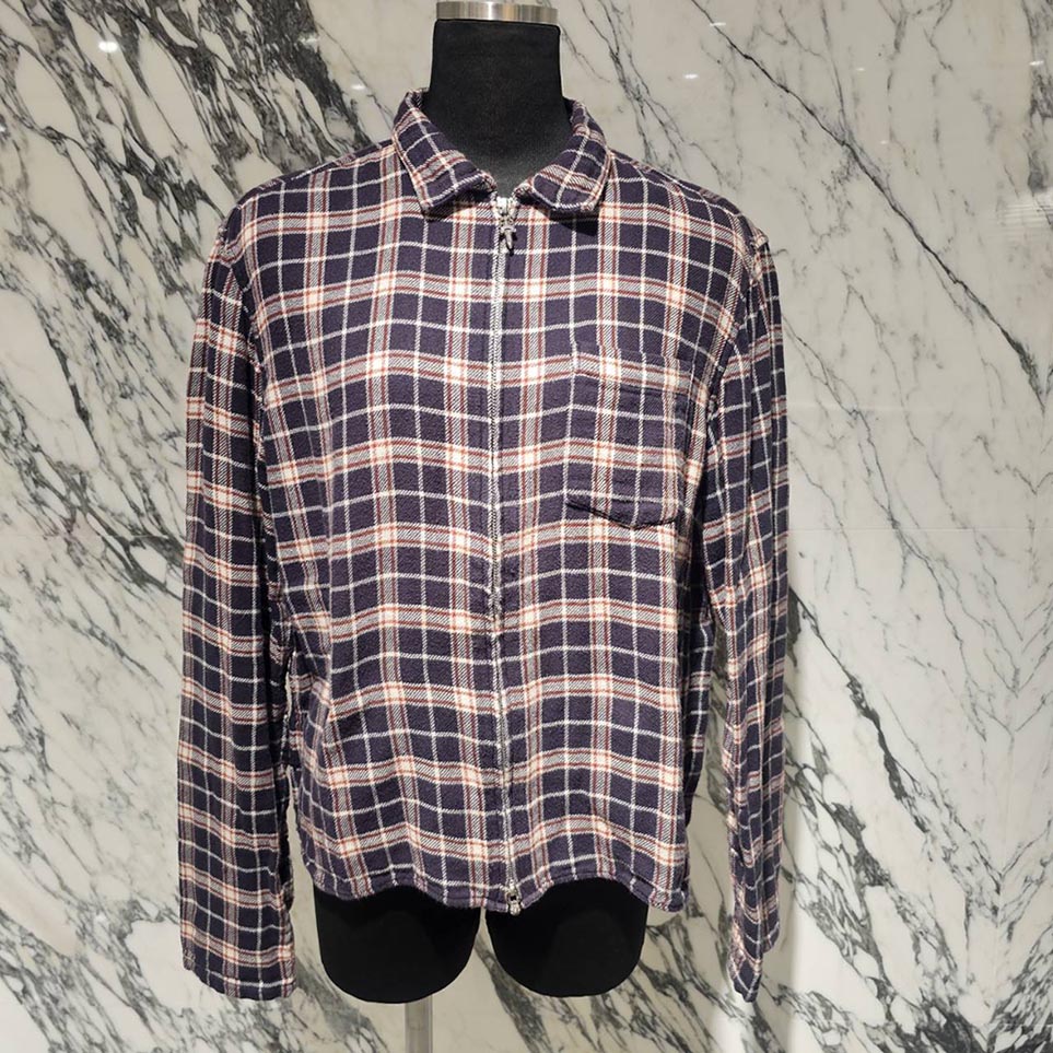 CHROME HEARTS Y NOT HEYWOOD Zip Up Check Shirt Size L クロムハーツ ワイノット ヘイウッド ジップアップ チェックシャツ シャツジャケット ネルシャツ ダガージップ 胸ポケット オールドクロム グレー×オレンジ×ホワイト サイズL【251116】【中古-B】