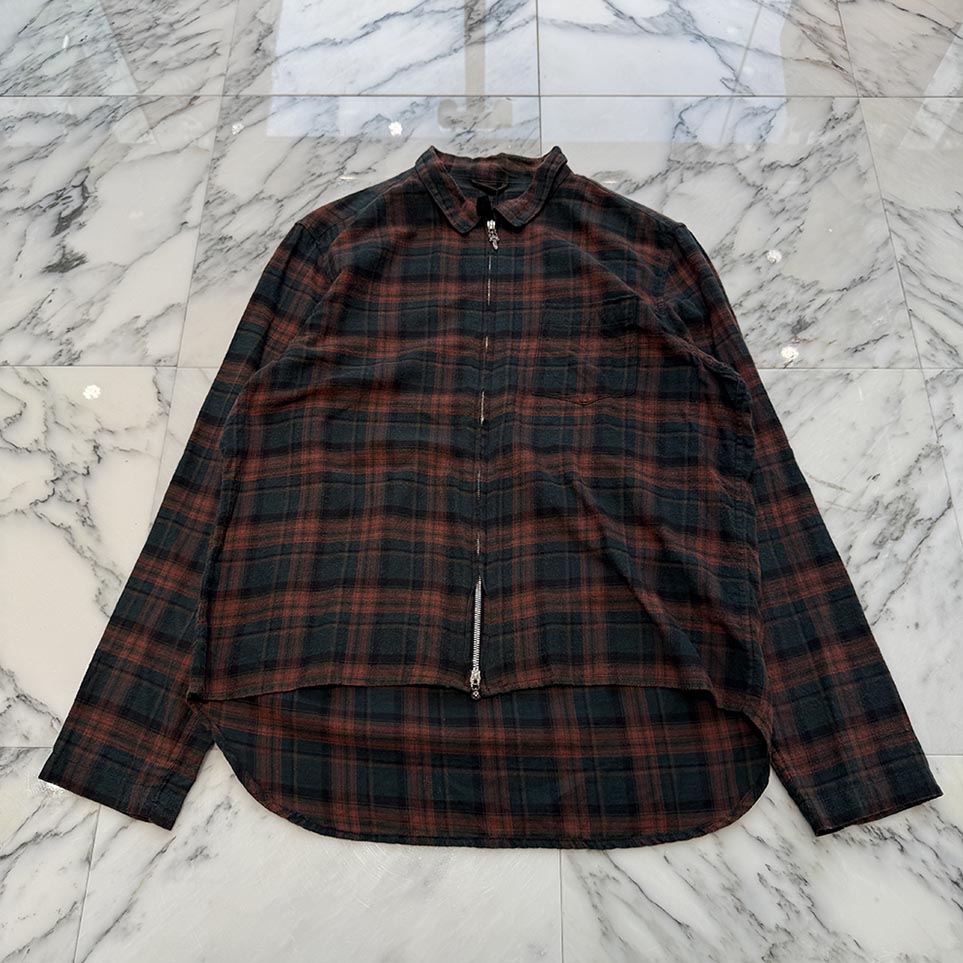 CHROME HEARTS Y NOT HEYWOOD Zip Up Check Shirt Size L クロムハーツ ワイノット ヘイウッド ジップアップ チェックシャツ シャツジャケット ネルシャツ ダガージップ 胸ポケット オールドクロム レッド×グリーン×ブラック サイズL【251104】【中古-B】