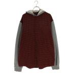 バレンシアガ サイズ:S 850859 TTM27 HOODED HYBRIT OUTERWEAR ダメージ加工フーデッドスウェット切り替えチェック長袖シャツ 中古 SS13