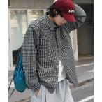 シャツ ブークレ チェック ジャストルーズ シャツ メンズ