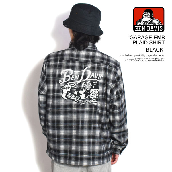 20%OFF SALE セール BEN DAVIS ベンデイビス GARAGE EMB PLAID SHIRT -BLACK- メンズ シャツ 長袖 チェックシャツ ネルシャツ 送料無料 ストリート