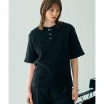 tシャツ 「ELLUV/エルヴ」ファインコットンスムース ファイヤーマンバックル 半袖 ヘンリーネックTシャツ/接触冷感 UVカット