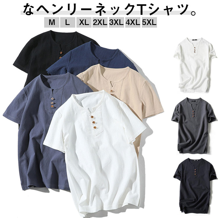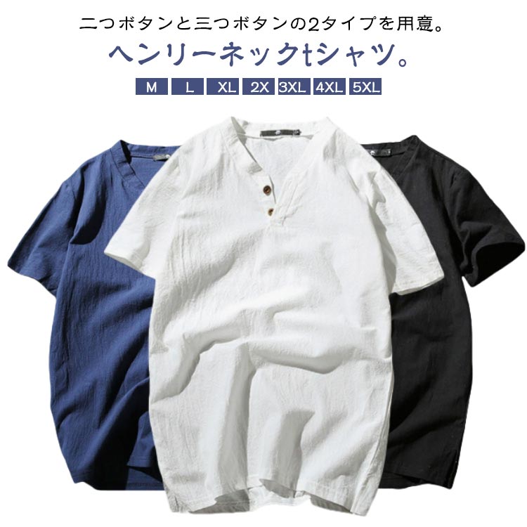 夏物 綿麻 コットン tシャツ 半袖 夏 リネン ヘンリーネックtシャツ 無地 大きいサイズ シンプル 半袖シャツ 半袖Tシャツ ティーシャツ カジュアル メンズ メンズファッション ルームウェア 父の日 プレゼント 2つボタン