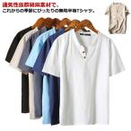 Tシャツ メンズ 半袖シャツ 綿麻シャツ リネンシャツ ヘンリーネック 麻 Tシャツ 綿麻 おしゃれ トップス Vネック ボタン付き ティーシャツ リ