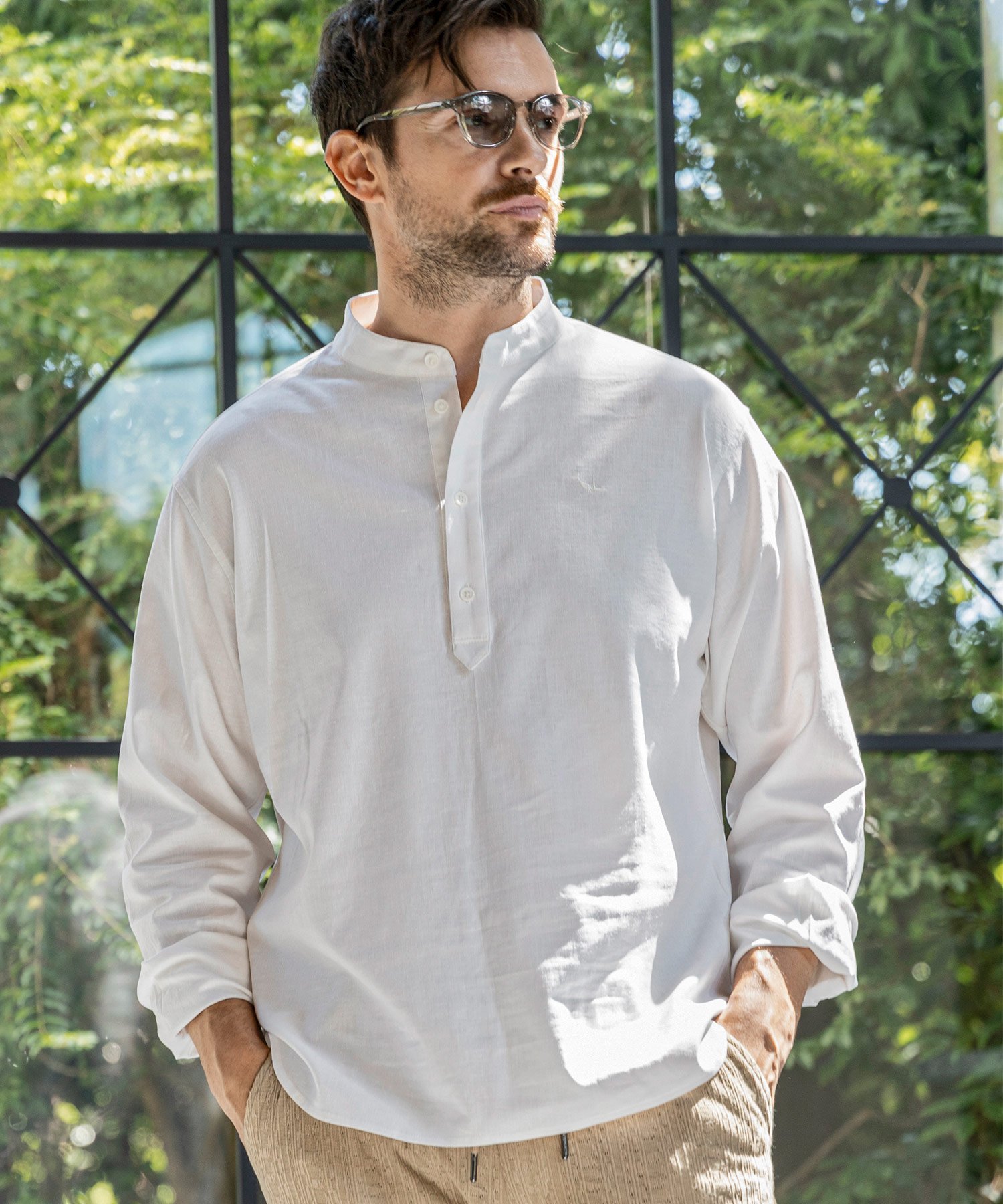 1PIU1UGUALE3 RELAX ウノピゥウノウグァーレトレ リラックス リネンブレンドバンドカラーヘンリーネックシャツ メンズ おしゃれ かっこいい ブランド ウェア ウノピュウ ウノピュー