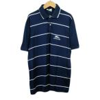 ロンシャン LONGCHAMP ポロシャツ ボーダー 刺繍 半袖 48 紺 ネイビー メンズ