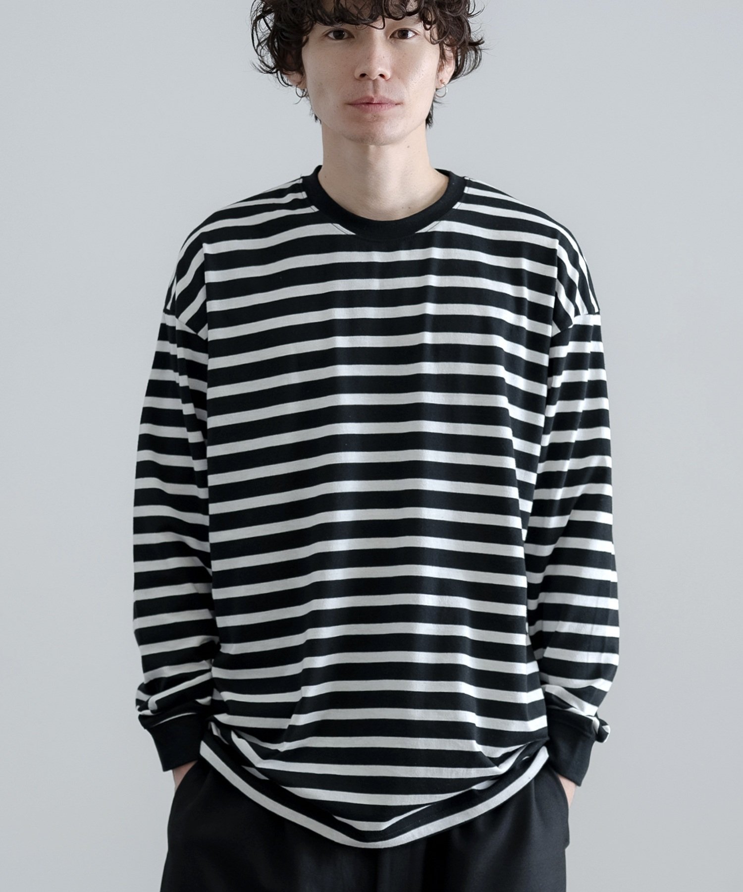 【SALE/82%OFF】SETUP7 SETUP7/半袖 ボーダーオーバーサイズロングスリーブTシャツ SCCH364 セットアップセブン トップス カットソー・Tシャツ ブラック ホワイト