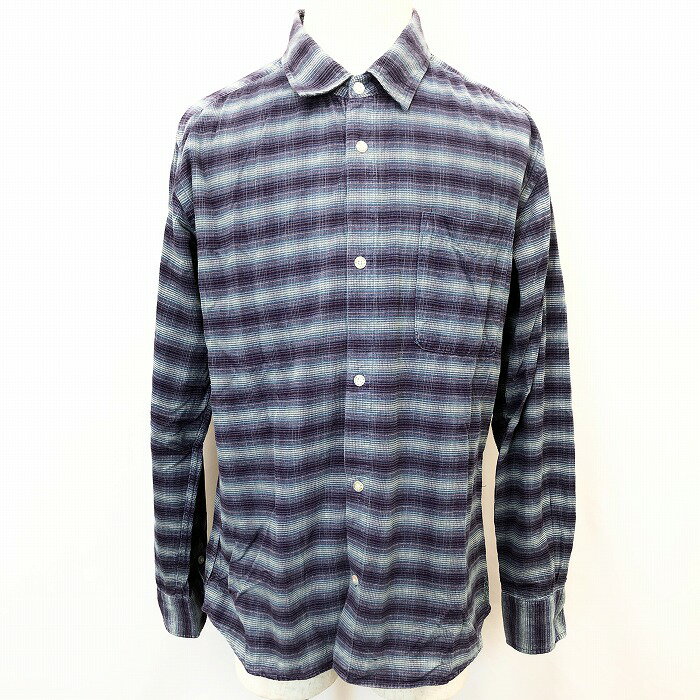 【楽天スーパーSALE限定!! \★30%OFF★/対象商品|12月4日(木)20時00分〜12月11日(木)01時59分まで】【中古】RUSS-K ラスケー L メンズ コーデュロイシャツ トップス マルチボーダー柄 胸ポケット ロゴ 長袖 綿100% コットン パープル×ネイビーなど