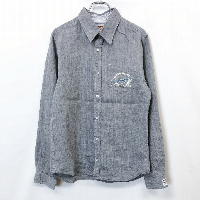 【楽天スーパーSALE限定!! \★35%OFF★/対象商品|12月4日(木)20時00分〜12月11日(木)01時59分まで】【中古】GOTCHA ガッチャ M メンズ 男性 シャツ ロゴ刺繍 襟とカフスにボーダー柄裏地 長袖 胸ポケット 麻100% リネン ヘザーネイビー 杢紺