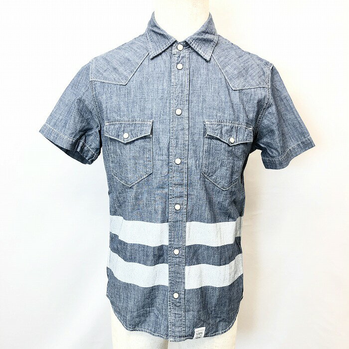 【楽天スーパーSALE限定!! \★35%OFF★/対象商品|12月4日(木)20時00分〜12月11日(木)01時59分まで】【中古】AZUL by moussy アズールバイマウジー S メンズ 男性 シャツ ボーダー ウエスタン ドットボタン 半袖 両胸ポケット 綿100% ブルー系 青系
