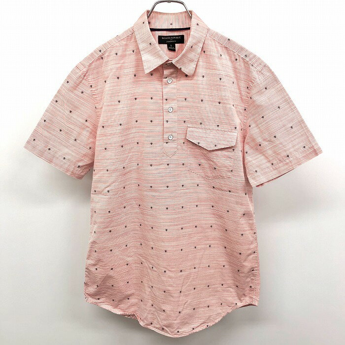 【楽天スーパーSALE限定!! \★35%OFF★/対象商品|12月4日(木)20時00分〜12月11日(木)01時59分まで】【中古】BANANA REPUBLIC バナナリパブリック S メンズ プルオーバー シャツ マイクロボーダー 半袖 綿100% ピンク系×ホワイト×ネイビー 赤系