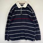 古着 トミーヒルフィガー TOMMY HILFIGER 長袖シャツ ラガーシャツ ワンポイント刺繍ロゴ L ネイビー系 ボーダー メンズ