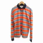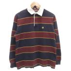 クロコダイル CROCODILE ラガーシャツ ラグビーシャツ M 紺 ネイビー ストライプ柄 長袖 /YS48 ■GY60 メンズ