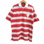 ポロスポーツ POLO SPORT ラガーシャツ ポロシャツ 半袖 エンブレム ボーダー 赤 白 レッド ホワイト M IBO76 メンズ