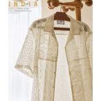 シャツ インド製 パッチワークレース シアー リラックスフィット オープンカラーシャツ ショートスリーブ メンズ