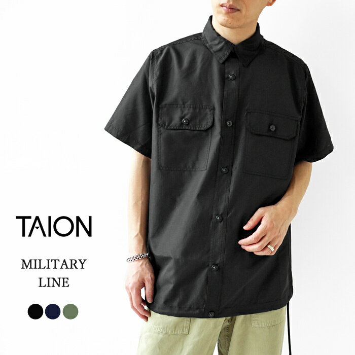 【SALE】タイオン シャツ メンズ TAION MILITARY HALF SLEEVE SHIRTS ミリタリー ハーフスリーブ シャツ 019SHNDML-1 半袖 リップストップ ワークシャツ 軽量 裾コード ≪返品交換対象外≫【ネコポス対象】【2450】