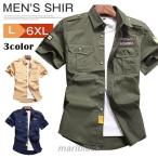 半袖シャツ メンズ ミリタリーシャツ 綿100% カジュアルシャツ ワークシャツ ミリタリー スリム シャツジャケット 夏物 半袖 無地 メンズファッション