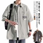 カジュアルシャツ ワークシャツ メンズ 半袖 夏服 サマーシャツ ミリタリーシャツ シャツ カジュアル 個性 紳士服 ゆったり 大きいサイズ