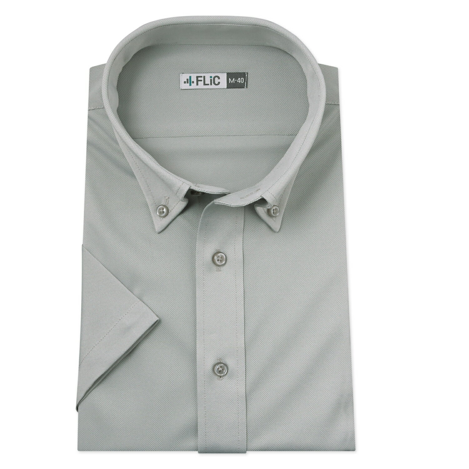 【半額/50%OFF★楽天スーパーSALE限定】ワイシャツ ノーアイロン 半袖 メンズ ストレッチ ニットシャツ ニットワイシャツ 吸水速乾 ボタンダウン ポロシャツ ニット素材 伸縮性 グレー 灰 テレワーク リモートワーク クールビズ 時短ニットワイシャツ / szb1202