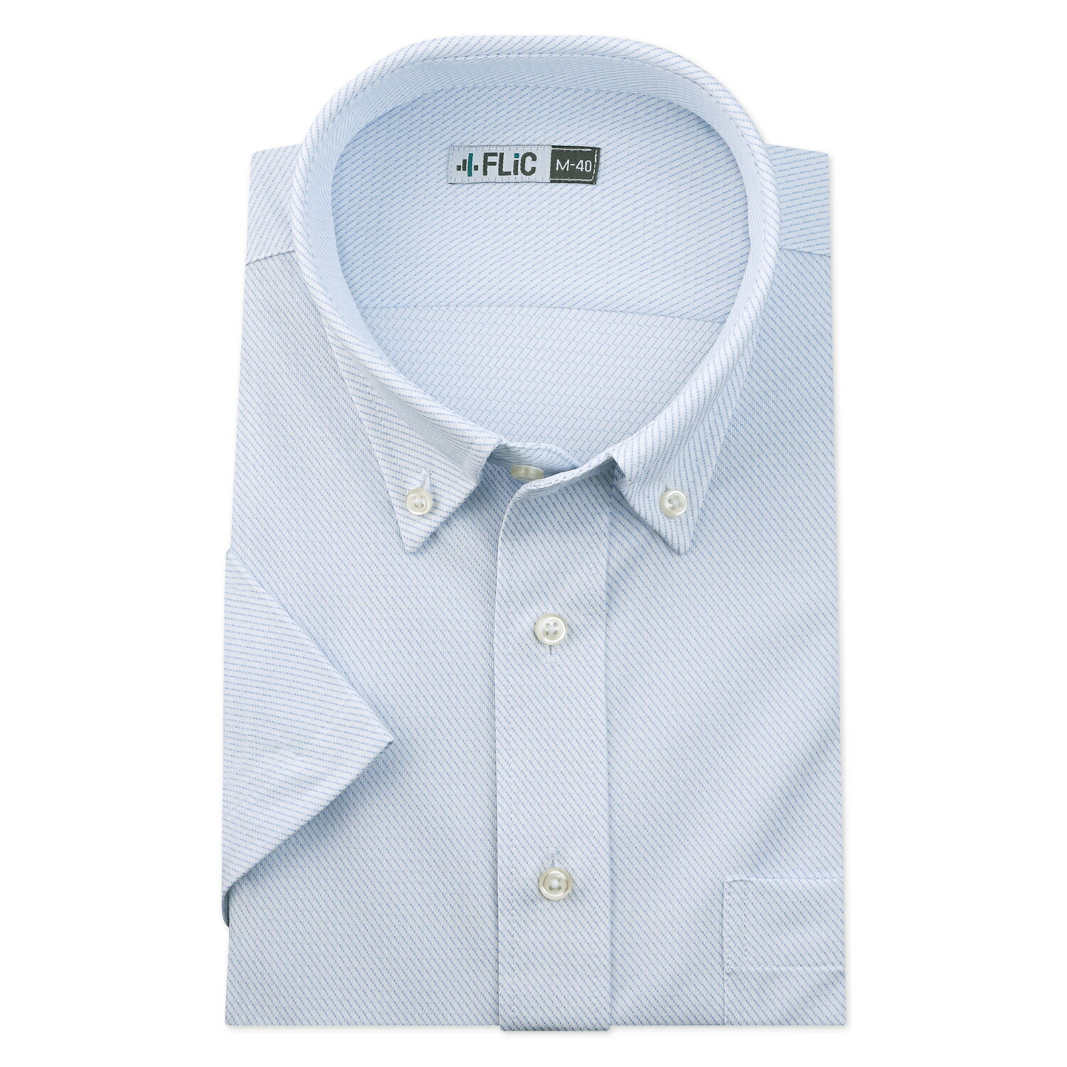 【半額/50%OFF★楽天スーパーSALE限定】ワイシャツ ノーアイロン 半袖 メンズ ストレッチ ニットシャツ ニットワイシャツ 吸水速乾 ボタンダウン ニット素材 伸縮性 ストライプ サックス 水色 テレワーク リモートワーク クールビズ 時短ニットワイシャツ / szh1236
