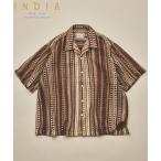 シャツ 「新色追加」インド製 リラックスフィット 総柄レース マルチストライプ オープンカラーシャツ ショートスリーブ メンズ