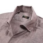 フィナモレ Finamore リネン シャツ 長袖 カッタウェイ セミワイドカラー 麻 メンズ ブラウン 茶色 無地 イタリア ブランド 春夏 国内正規品