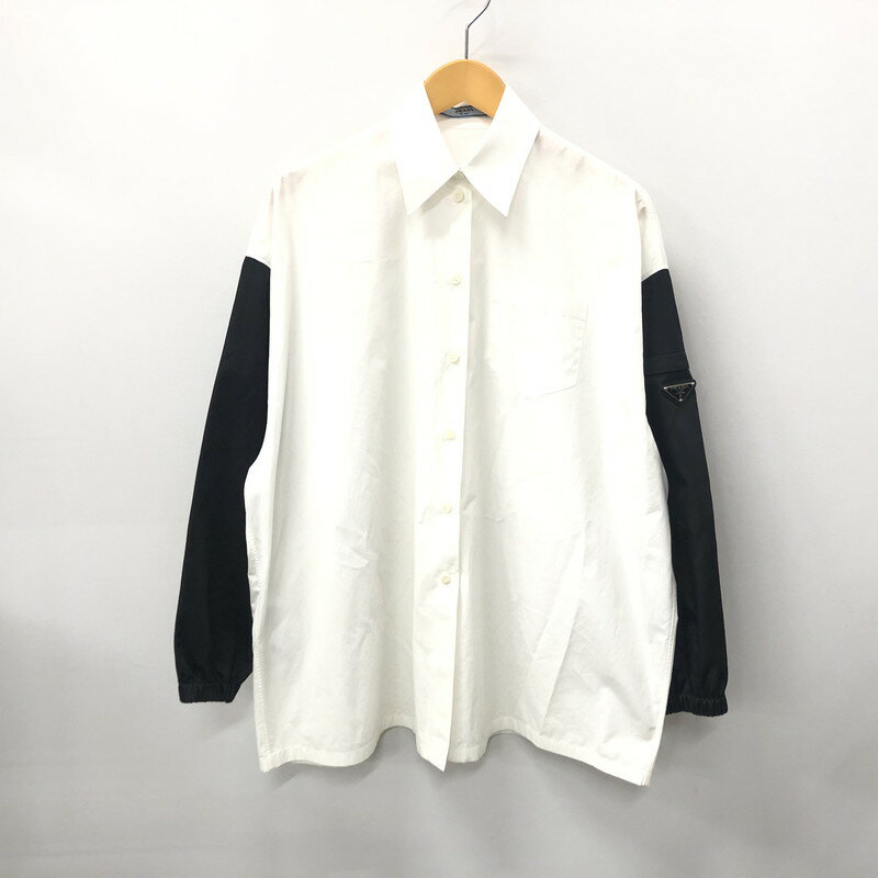 楽天スーパーSALE 20%OFF~【中古】【メンズ】 PRADA プラダ P415F S212 COTTON POPLIN SHIRT WITH RE NYLON コットン ナイロン 長袖シャツ 141-240613-mw-7-tei サイズ:36 カラー:ホワイト 万代Net店
