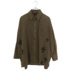 クロムハーツ Chrome Hearts サイズ:M MAHAL KITA クロスパッチクロスボタンオーバーサイズ長袖シャツ(カーキ×シルバー)【811062】【SS07】【メンズ】【中古】bb415#rinkan*B