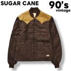 90s ヴィンテージ シュガーケーン カリフォルニア SUGAR CANE CALIFORNIA レザー ヨーク キルティング ジャケット 中綿 切替 M相当 ブラウン メンズ