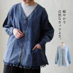 ブルゾン ジャケット デニム ジップブルゾン 長袖 レディース Vネック ムラ 褪せ色 カットオフ ポケット コットン 薄手 軽い 袖リブ パティ