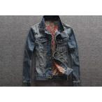 メンズ ロゴ 刺繍 デニムジャケット Gジャン ジージャンジャケット リベット 花柄 ショート丈