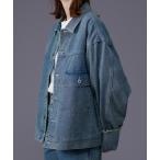 デニムジャケット gジャン ヴィンテージ加工ハイネックデニムジャケット/Vintage-Washed High-Neck Denim Jacket メ