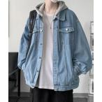 デニムジャケット gジャン 「26年春夏新作」フード付き バックプリントデニムジャケット メンズ