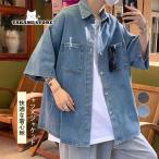 デニムシャツ メンズ 無地 トップス アメカジ 半袖 通学 通勤 アウター ジャケットシャツ 羽織り 開襟シャツ カジュアル 部屋着
