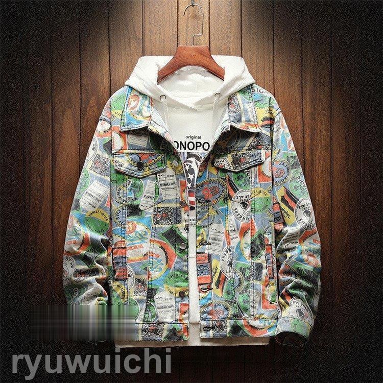 【期間限定10%OFF】デニムジャケット メンズ Gジャン ジャケット 落書き 総柄 柄物 ジージャン プリント オシャレ メンズファッション カジュアル アウトドア