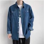 デニムシャツ デニムジャケット メンズ 長袖 カジュアルシャツ 無地 全綿 加工 ウエスタンシャツ スリム ダンガリーシャツ 春 秋 ス