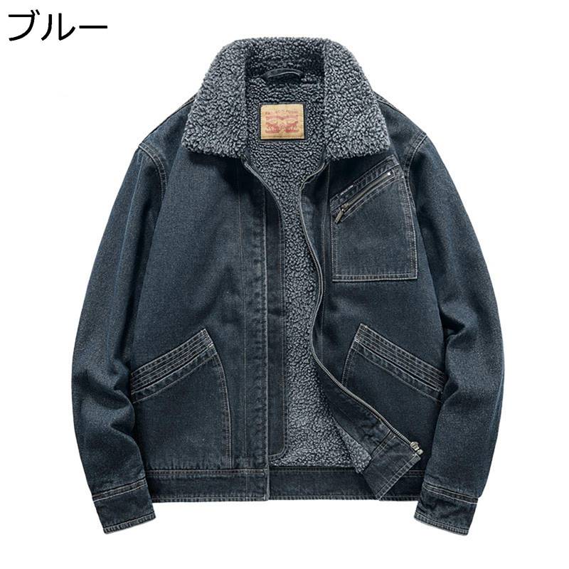 ジャケット メンズ ボアアウター デニム ジージャン 大きいサイズ 折り襟 ジップポケット フリース コート ジッパー ボアブルゾン 秋冬服 あったか 防寒 保温 トラッカージャケット ストリート
