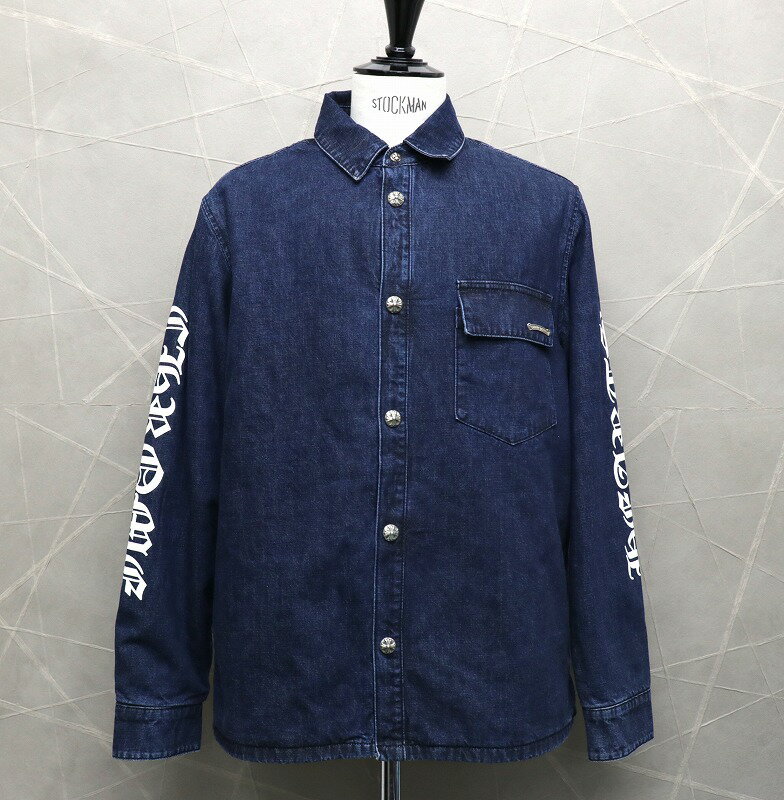 新品未使用 CHROME HEARTS クロムハーツ デニムシャツ ジャケット 2025新作 クロスパッチ クロスボール インディゴ サイズS 中古 4b004573