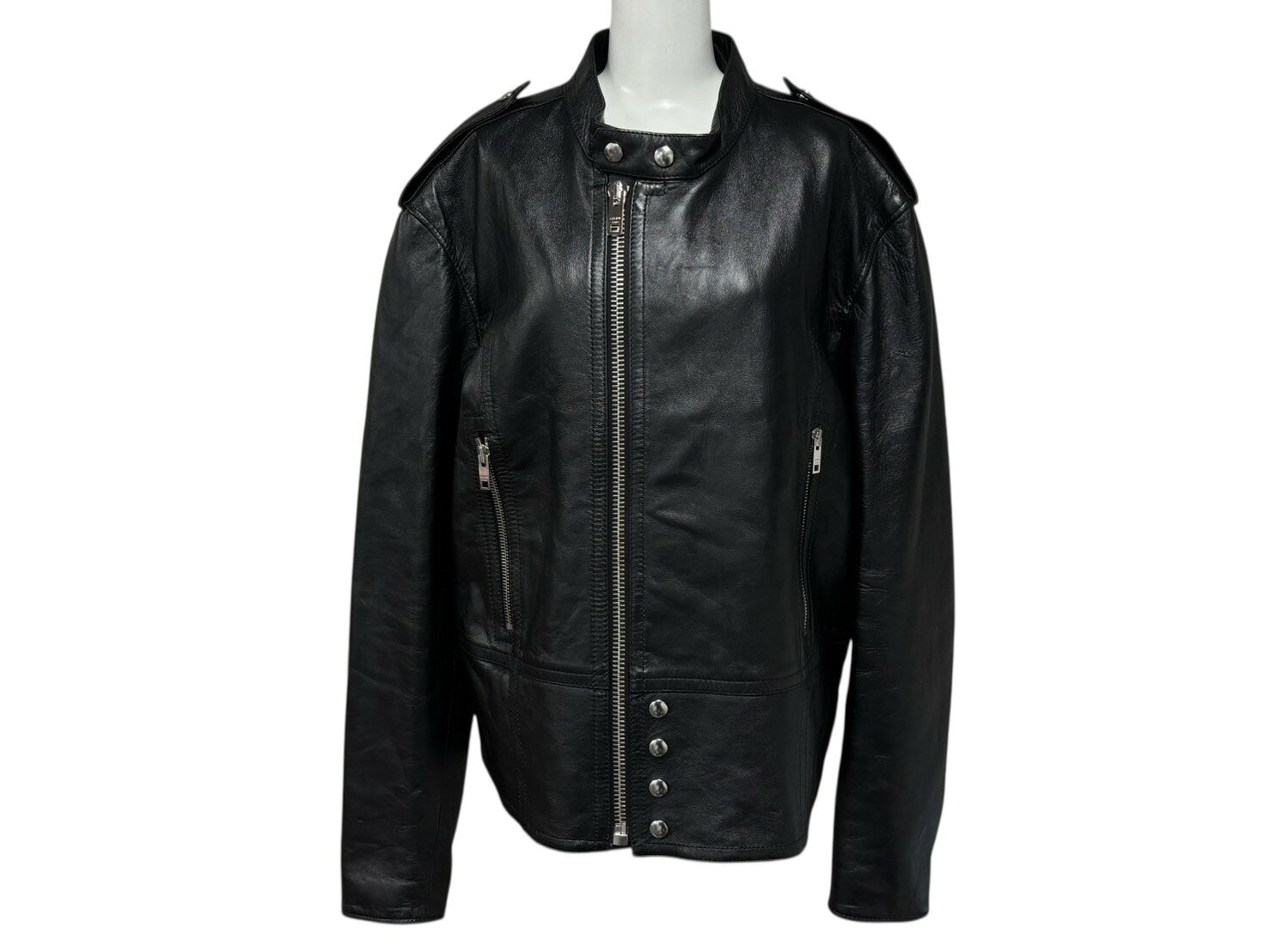 BALENCIAGA バレンシアガ 23SS 3B Sports Icon Leather Jacket スポーツ アイコン レザー ジャケット ブラック ラムスキン 697771 サイズ2 美品 中古 4b006026
