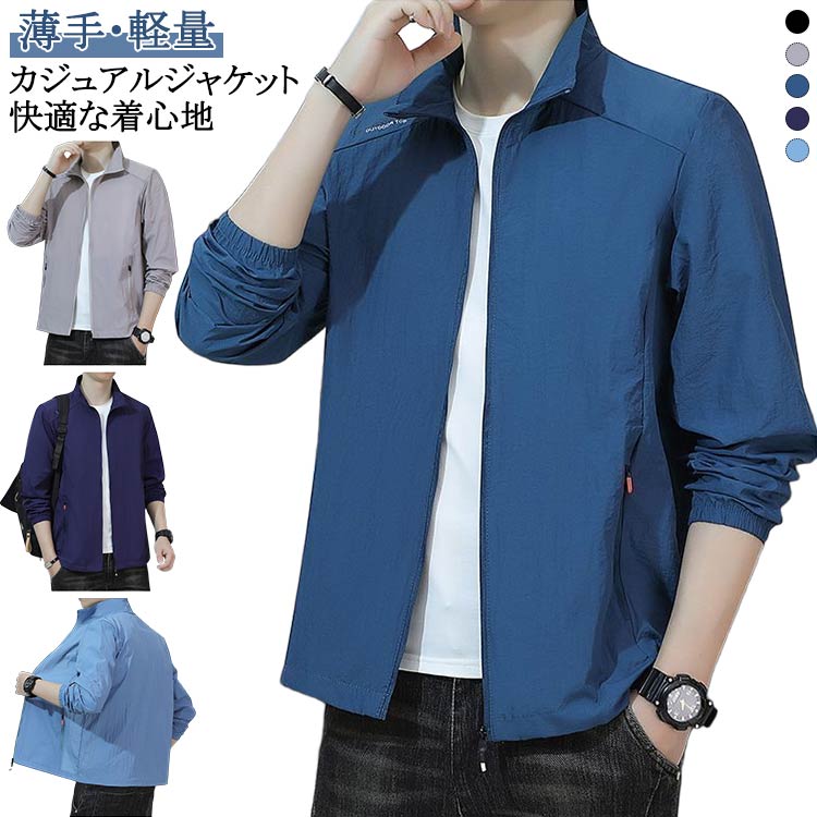 送料無料 ジャケット メンズ ブルゾン アウター 薄手 軽量 防風 ライトアウター スタンドカラー ジップジャケット ジャンパー おしゃれ カジュアル