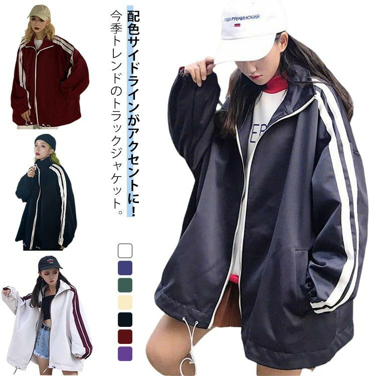 【クーポン利用で10%OFF】ダンス トラックジャケット オーバーサイズ レディース スタンドジャケット ストリート 袖ライン入り ジャージ上 サイドライン 可愛い カ ブルゾン 衣装 ジャージ ライトアウター