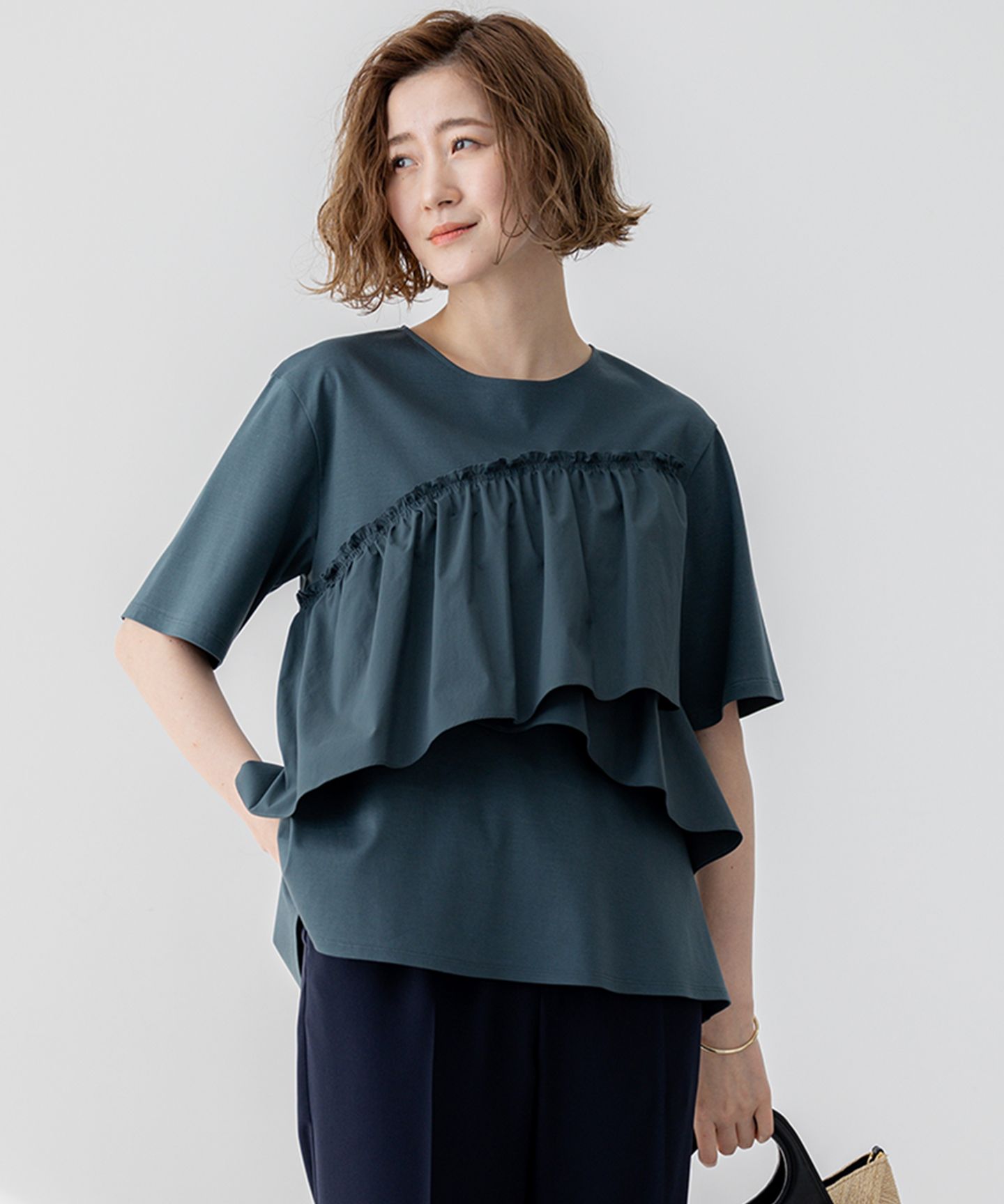 23区(ニジュウサンク)/【汗じみ防止/洗える】ランダムフリルジャージー ドッキング カットソー