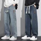 ロングパンツ ワイドパンツ ジーンズ メンズ 夏用 韓国ファッション ゆったり デニムパンツ ウエストゴム ストレートパンツ カジュアルパンツ 楽ちん