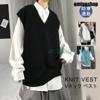ニットベスト メンズ 袖なし ベスト Vネック アウター ニット トップス スクール 男子 学生 ゆったり カジュアル オシャレ 通勤 通学 秋 冬
